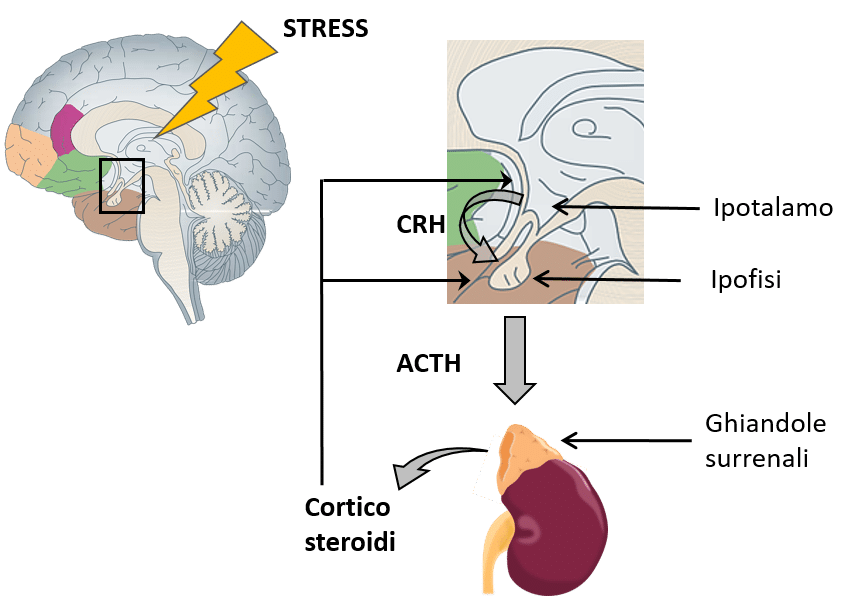 L'ACTH è un ormone prodotto e rilasciato dall'ipofisi in risposta agli stimoli stressanti rilevati dall'ipotalamo. Quando l'ipotalamo rileva uno stressor, invia segnali all'ipofisi che ne risultano nella produzione e rilascio di ACTH.