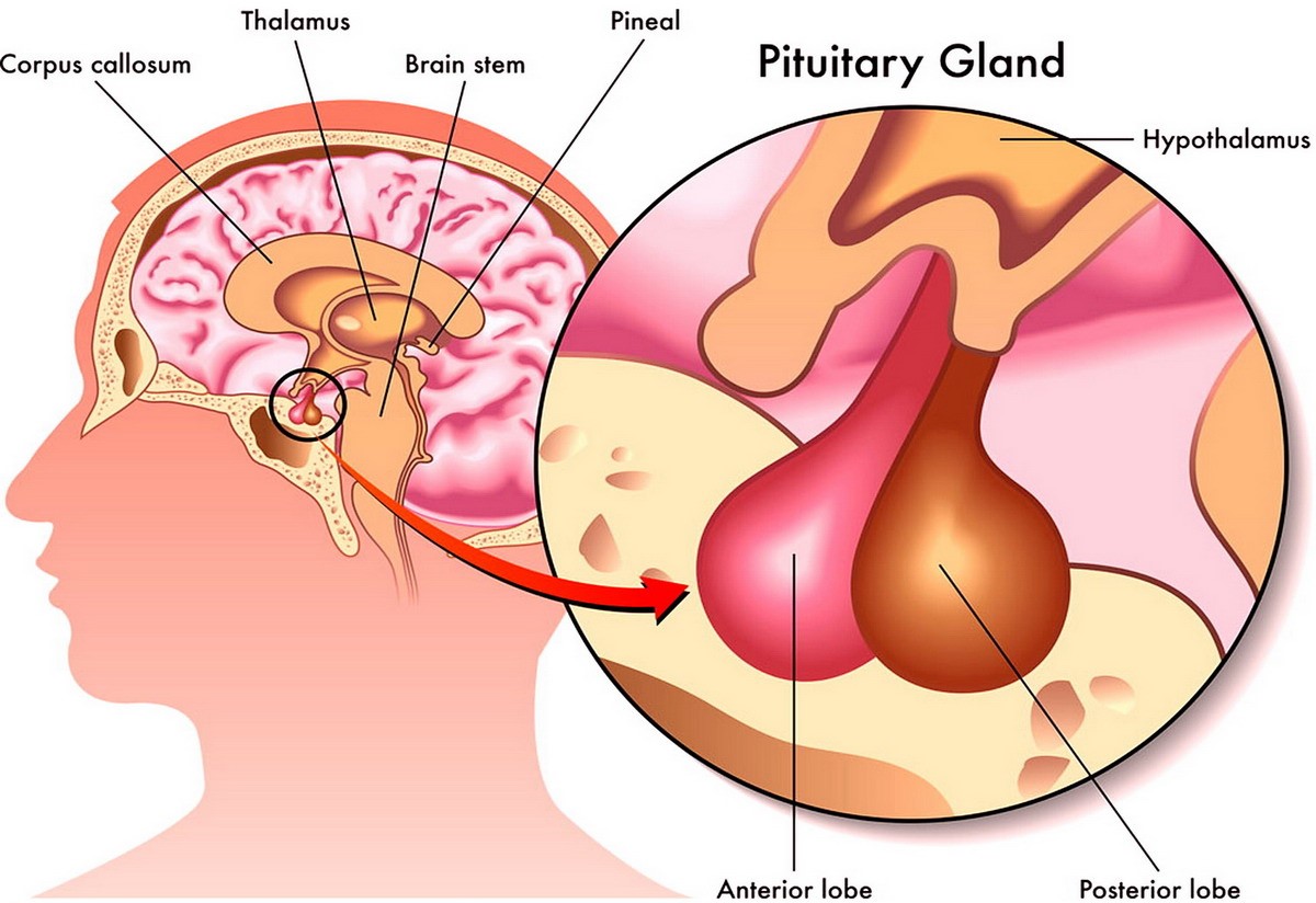 L'ipofisi, detta anche ghiandola pituitaria, anch’essa molto piccola con un peso di poco inferiore a mezzo grammo, è situata alla base del cervello appena sotto l'ipotalamo. Ricopre un ruolo chiave nel regolare l’attività di varie ghiandole in risposta a segnali dati dall’ipotalamo.